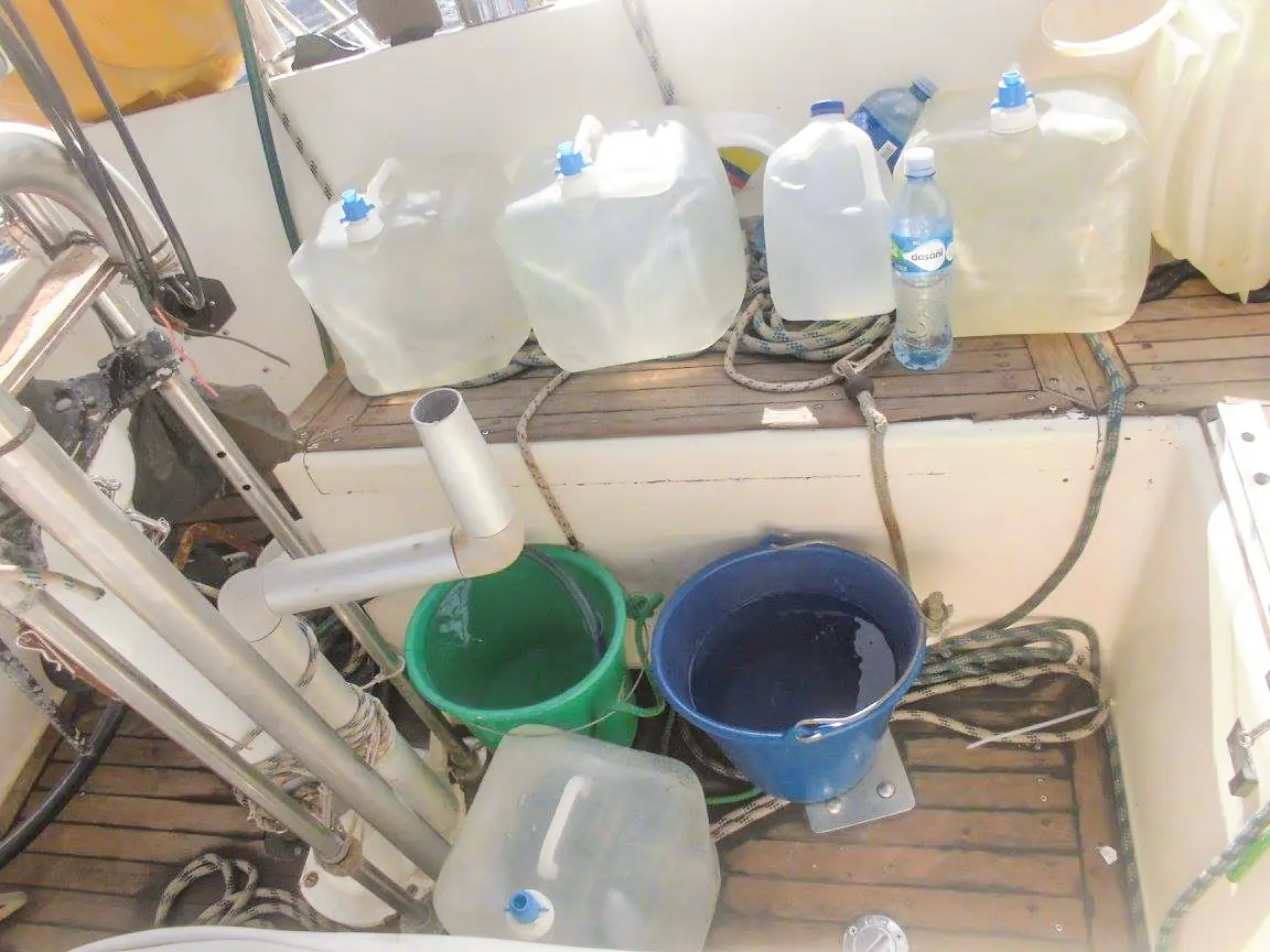 Det er imidlertid «drikkevann» som er nøkkelordet her. Mye av vannforbruket om bord kan erstattes med sjøvann som det virkelig er ubegrenset tilgang til. En del av matlaging samt klesvask, dusj og bading kan vi med fordel bruke sjøvann til. Men behovet på iallfall 2-3 liter med drikkevann per person per dag kommer vi oss ikke rundt.