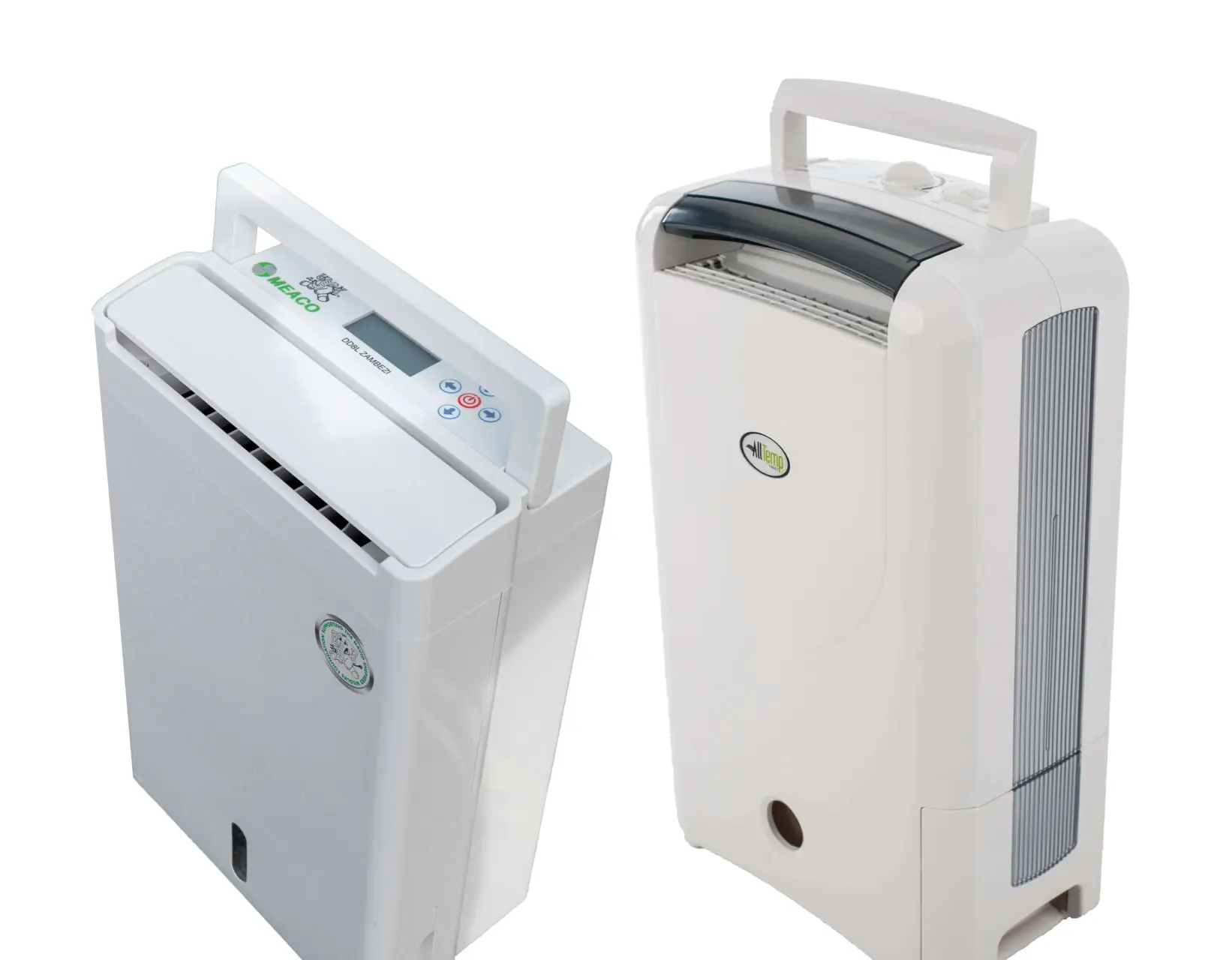 Britiske Meaco er store på luftavfuktere og har i sortimentet flere forholdsvis rimelige tørkerotoravfuktere. Mange båtutstyrsforhandlere fører dette merket. Deres bestselger er Meaco DD8L. DD8L Zambezi er litt større, litt kraftigere og har større vannoppsamler. Arida har både «vanlige» luftavfuktere og avfuktere for fast installasjon. Båtutstyrsforhandlere og andre butikker har de i sortimentet. Også AllTemp har både flyttbare avfuktere og avfuktere for fast installasjon i sortimentet. Deres modell AllTemp Handy er en utfordrer til Meaco. Selges blant annet hos Maritim og hos Clima-Norge på Sola. Vi tar med en oversikt over noen av de mest populære modellene. Alle har ulike tilleggsfunksjoner og forskjellige justeringsmuligheter som regulering av hastighet, hurtigtørking, timer og så videre.
