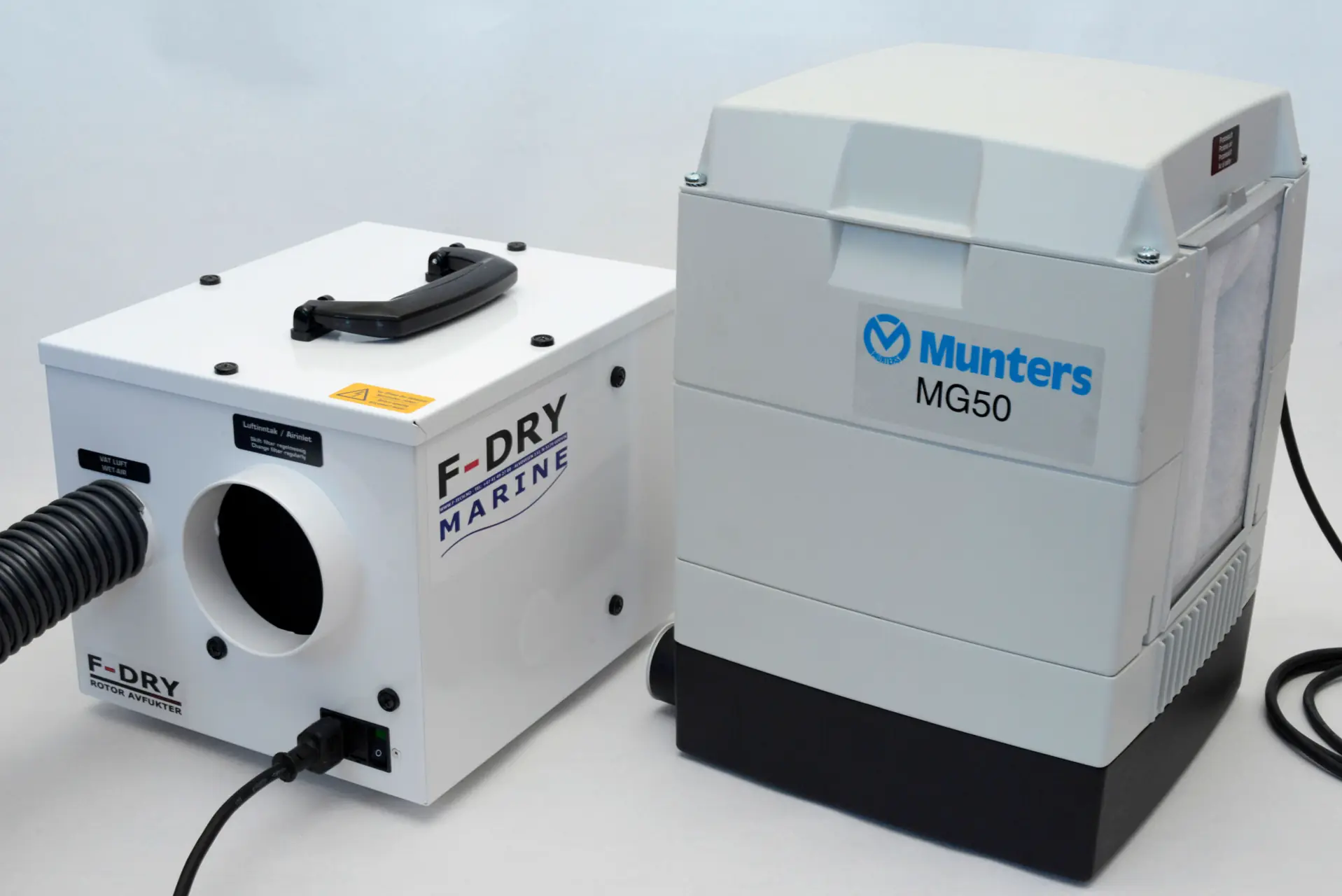 Munters MG50 er en «slugger» av en avfukter, og blant det aller ypperste som er på markedet. Men den koster en del, rundt 18 tusen kroner komplett med monteringssett og ekstern hygrostat. Modellen kan brukes løst eller installeres permanent i båten. Normalt arbeidsområde mellom -20 - + 40 grader. Hygrostaten kommer med 4 meter ledning og kobles til avfukteren med hurtigkobling.