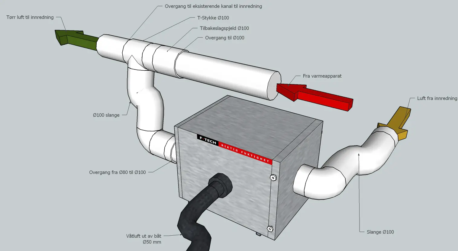 Bergensbedriften F-Tech har en meget interessant avfukter for fast montering, CR80Boat. Som navnet tilsier er den spesielt utviklet for bruk i båt. Interessant er det at den kan kobles mot eksisterende rørsystem fra dieselvarmeren. Den vil da kunne blåse tørr luft rundt i båten gjennom samme kanalsystem som dieselvarmeren. De fysiske mål på selve apparatet er 285x313x293 millimeter, vekt 15 kg. Installasjon er relativt enkel når man først har funnet ut hvor den skal plasseres. Pris cirka kr 26 tusen med ekstern hygrostat.