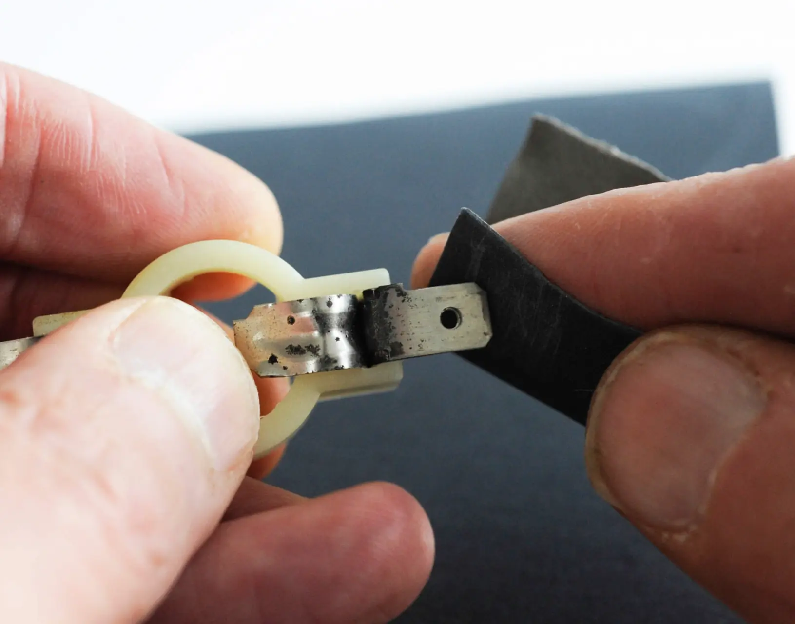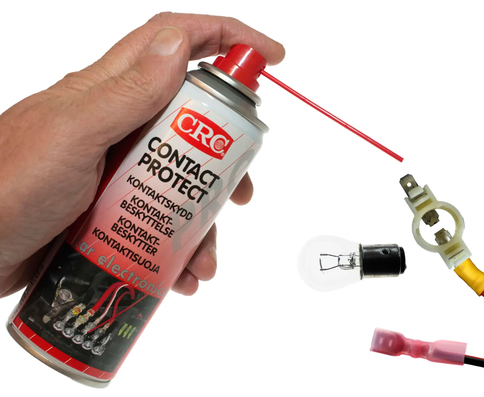 Bruk alltid en god kabelskotang når du skal presse kabelsko. En slik hører hjemme i båtens verktøyskrin. Puss ren både kontaktpunktene for pæreholderen og kontaktene på pæren, dersom du ikke bytter denne. Er kontaktene oksidert kan du rengjøre med oxsiderens spray, som CRC Oxide Clean. Sett kontaktene inn med et tynt lag syrefri vaselin eller bruk kontaktspray, for eksempel CRC Contact Protection. Mangler du disse spesialsprayene kan du bruke et universalmiddel, for eksempel CRC 6-66 Maritim, CRC 5-56, WD-40 eller Q20. Gjør ren pakningene som skal holde lanternen vanntett. Etter rengjøring kan du sette pakningen inn med en tynt lag syrefri vaselin. Gjør lanterneglasset rent med vanlig vindusspray. Skal du ha båten i vinteropplag kan det være smart å sette kontaktene inn med syrefri vaselin, så oksiderer de ikke gjennom vinteren.