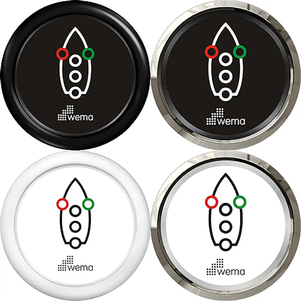 FULL KONTROLL: Det er også mulig å koble til instrumenter som viser om det er én eller flere av lanternene som er ute av drift. Wema har et slikt instrument, pris en drøy tusenlapp. Kommer i ulik utførelse, hvit eller svart bunn med svart, hvit eller blank ring.
