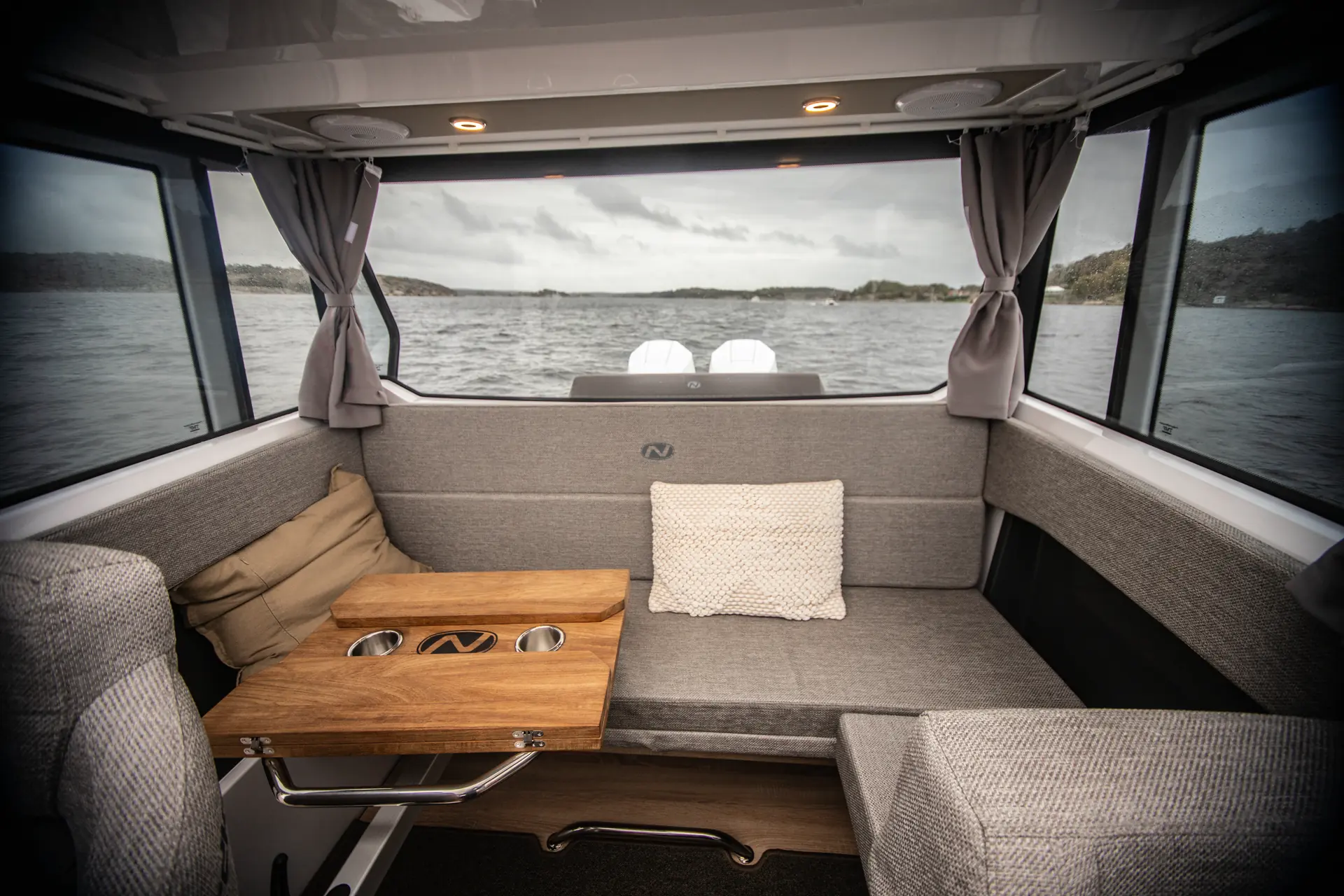 Coupe 830 er en typisk skjærgårdscommuter til og fra landstedet, badeplassen eller til den store ekspedisjonsturen. Da kommer de brede skyvedørene på hver sin side godt med, og det samme et kryssholt plassert vis-a-vis førerplassen. Sammen med nedfelte dollbord gjør det båten enklere å håndtere for en person. Det er også godt med griperekker på sturhustaket.