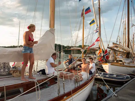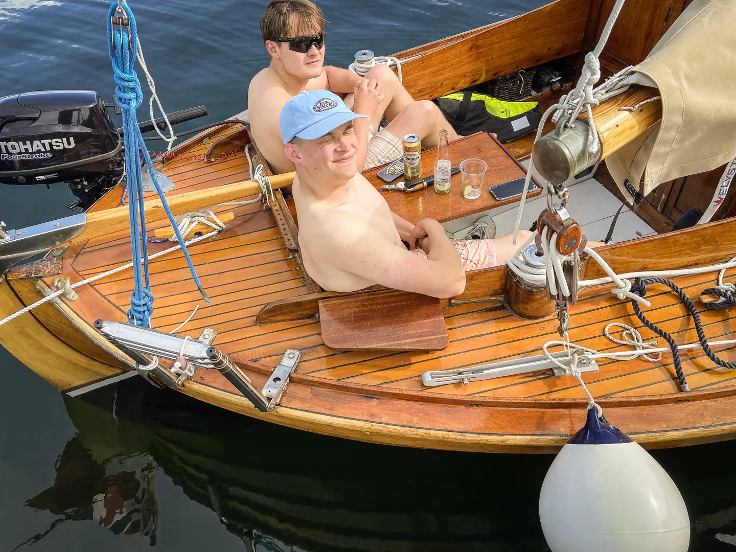 Faren min har eiet Serenad i 27 år nå, og båten har deltatt på Risør trebåtfestival alle årene vi har hatt henne. Jeg, som er «yngstematros», blir med for 26 gang i år, men jeg er utpekt som Serenads neste kaptein. Alle i familien er veldig glad i båten og det har blitt mange fine minner om bord i Serenad. En perfekt barndom spør du meg. Jeg har alltid visst stor inte- resse for båten og båtlivet, og min far har alltid latt meg slippe til. Det setter jeg stor pris på. Jeg fikk låne båten alene allerede som 16 åring. Veldig ofte er det jeg som overtar roret når jeg kommer om bord og min far som ordner med fendere og tauverk, samt hopper land.