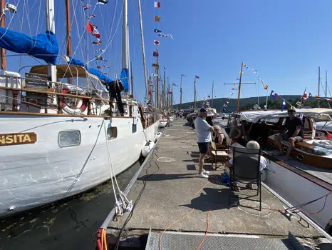 For en som ikke er så bevandret i dette miljøet, og primært har vært interessert i superkaviterende propeller og karbonfiber, blir det en viss overgang. Jeg satte meg ned og pratet med en jeg trodde jeg hadde pratet med før, men som viste seg å være hans eneggede tvillingbror. Til og med skjegg og hår hadde samme design! Begge har hver sin store klassiske trebåt, som begge nærmer seg hundre år. Til overmål hadde de to brødrene med hver sin niese som også var nær identiske, men vi fikk da etter hvert oppklart mysteriet.