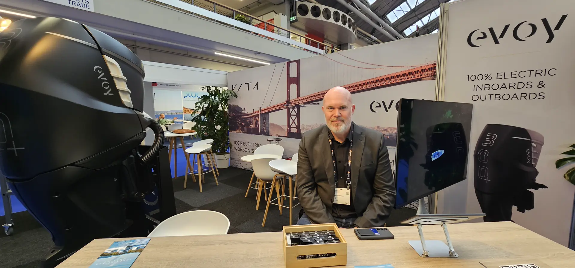 CEO hos Evoy Leif A. Stavøstrand, har det travelt om dagen, og fra USA messe til Mets. Evoy har hatt en eventyrlig vekst og nettopp fått 16 millioner euro i EU midler, til videreutvikling. De har også nylig inngått partnerskap med Britiske Vita som er eksperter på elektrisk marineteknologi.