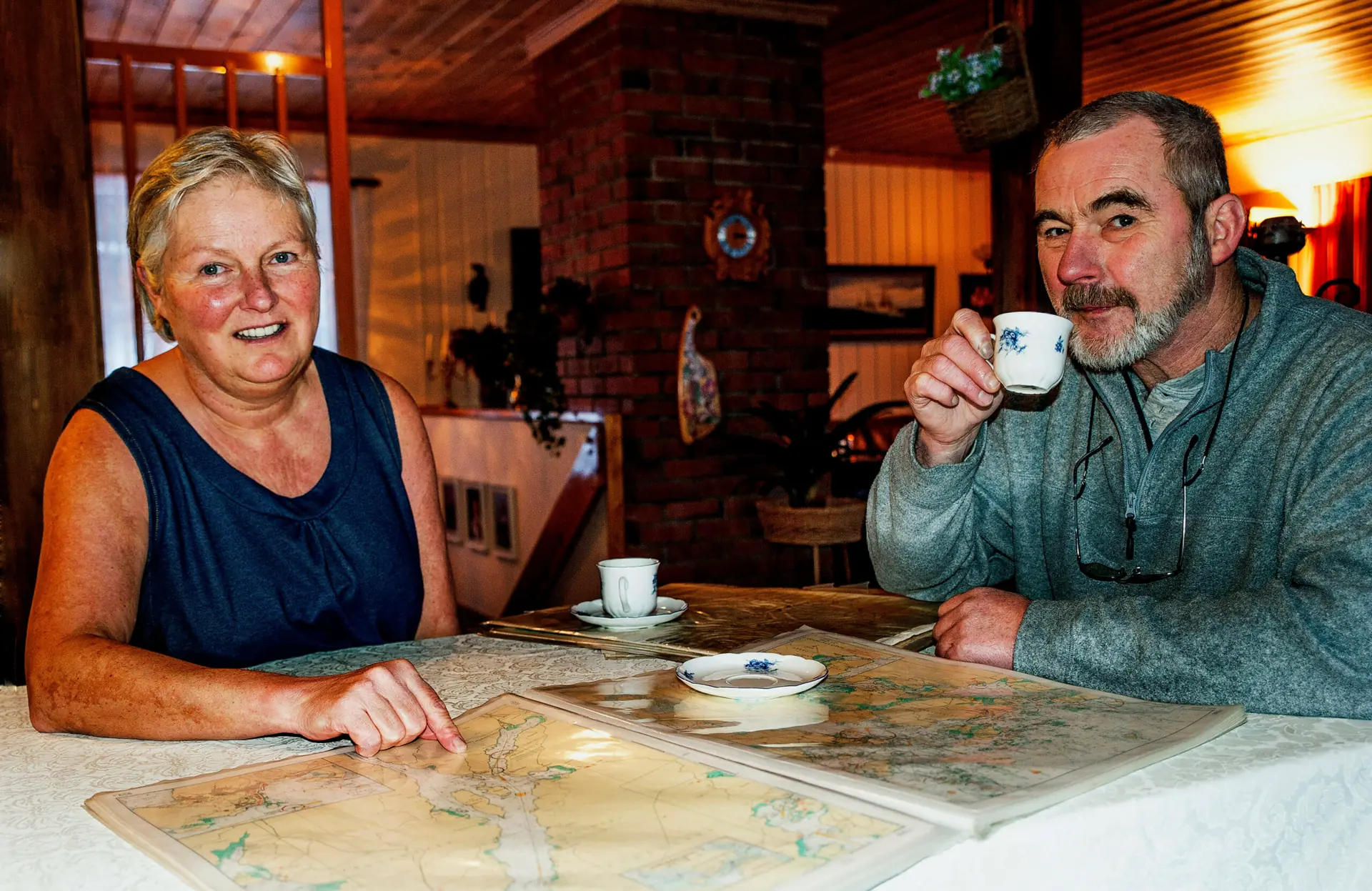 – Ja, du skjønner vi venter på å komme ut, komme i gang, sier de der vi sitter med papirkart-bunkene. Trond er tilhenger av fysiske kart, GPS’en kan jo svikte, mener han. Og når de først drar i gang til påske blir det båt for alle pengene, hver helg helt til høsten! Og sånn har det vært helst siden de var små. Kart med posisjoner og overnattingsplasser har gått i arv, så det meste er klart når de legger ut på.